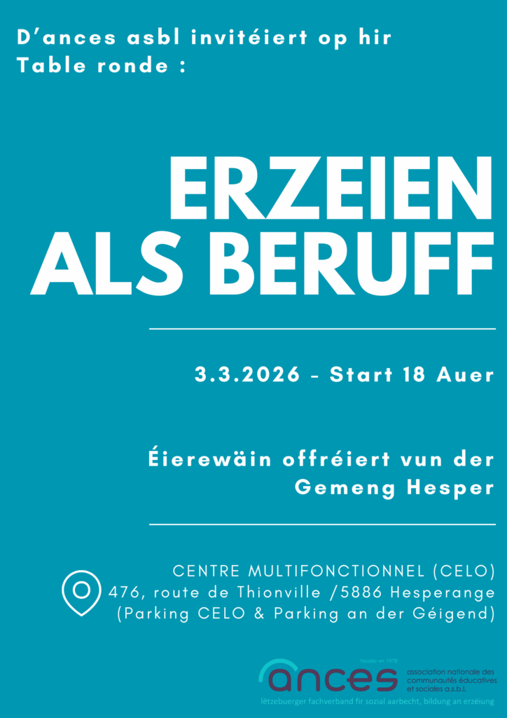 Zu diesem Abend mit Gästen aus dem sozialen Sektor wird M. Claude Meisch – Minister für Bildung Kinder und Jugend, die Veranstaltung mit einer Einführung eröffnen.